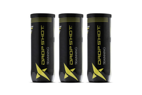 Er wordt bij Drop Shot een onderscheid gemaakt tussen Tournament en TRAINING ballen. Beide zijn drukgevuld, op dezelfde druk ( 11Psi voor Padel) en zitten in een blik onder druk. Het verschil zit hem in het vilt.